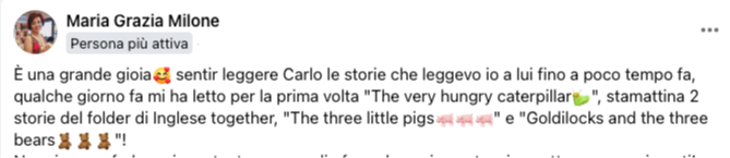 • Genitori che a casa non parlano sempre  inglese, ma sanno quanto sia importante imparare a leggere anche in inglese per l'apprendimento profondo della lingua.